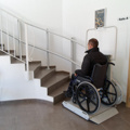 En este edificio oficial necesitaban cumplir la normativa de accesibilidad a lugares públicos y nosotros les hemos ofrecido una plataforma Slim en un tramo curvo de escalera conectando el primer piso con la planta baja para los desplazamientos con silla de ruedas. Su instalación es fácil y rápida fijándose con pies de apoyo a los escalones y sin necesidad de obras ni cambios estructurales, puede estar montada en poco tiempo.