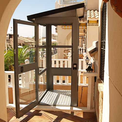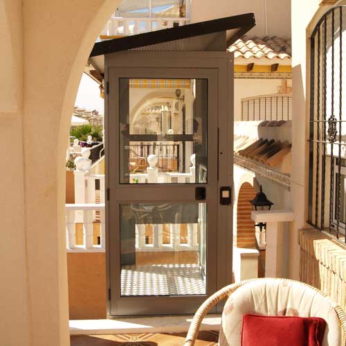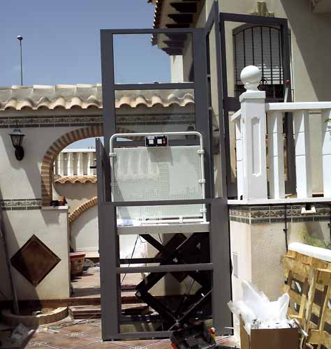 Plataforma salvaescaleras ubicada en intemperie de un chalet en Elche un municipio que pertenece a Alicante.