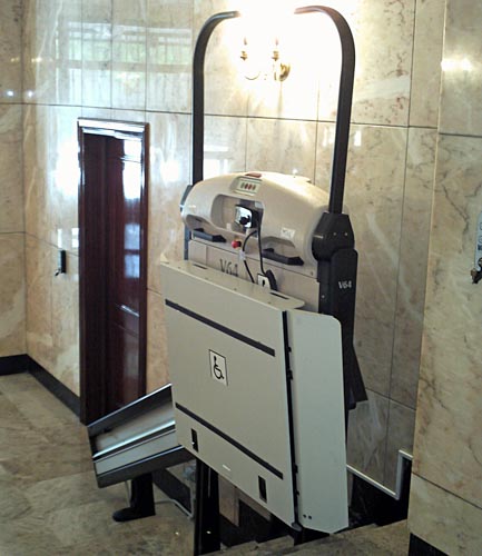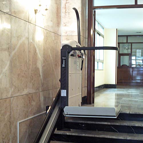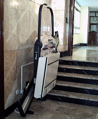 Gracias a este salvaescaleras estas oficinas se adapte a la normativa de accesibilidad de edificios públicos.