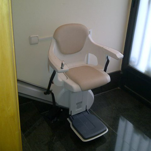 En esta instalación nos encontramos una escalera recta fijada en la parte derecha de la escalera para dar opción al cliente a poder acceder a la planta superior con plena independencia y seguridad. Gracias a su asiento giratorio el usuario embarca y desembarca con total seguridad.