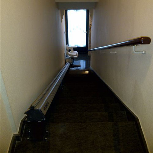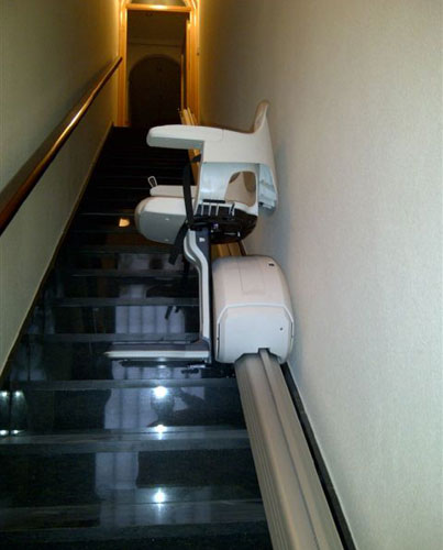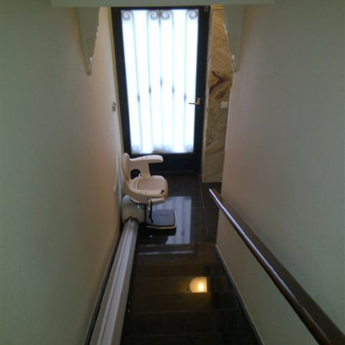 Silla salvaescaleras recta Levante instalada en el municipio de Elche la capital de la comarca del Bajo Vinalopó.