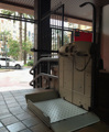 Salvaescaleras Vimec instalado en la entrada de un edificio en la población de Ibi situada en el interior de la provincia de Alicante.