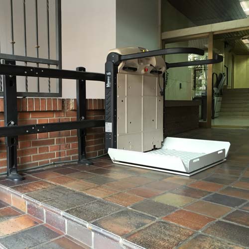 Esta V65 la hemos instalada en para superar un pequeño desnivel de un par de escalones y conectar en nivel de la calle con la entrada del edificio.