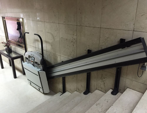 Salvaescaleras Vimec V64 instalado en una comunidad de vecinos en el municipio de La Nucia en la provincia de Alicante.