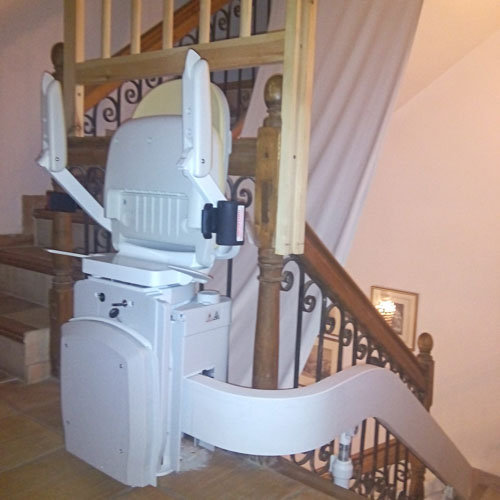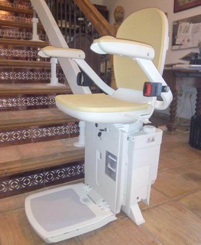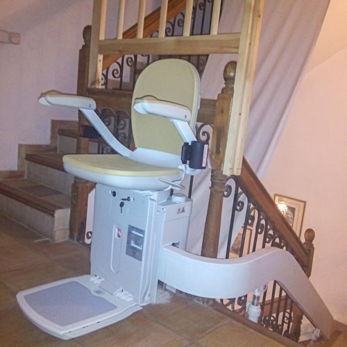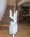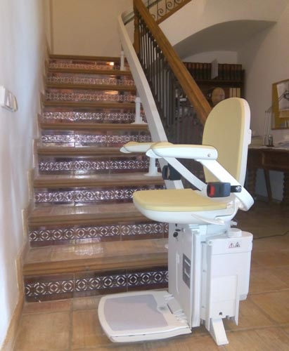Silla Salvaescaleras Acorn modelo curve instalada en un hostal en el municipio Mutxamel (Alicante).