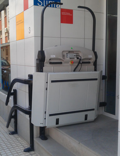 Plataforma salvaescaleras colocada en las oficinas de Suma Gestión tributaria en Pilar de la Horadada (Alicante).