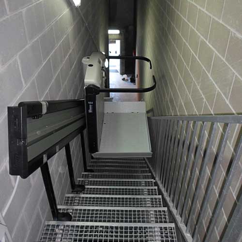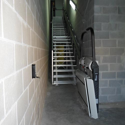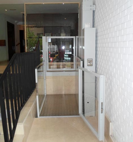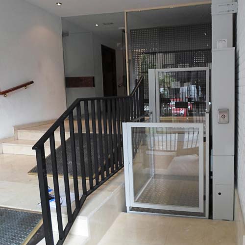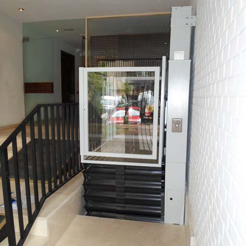 Esta tipo de salvaescaleras son una solucione eficaz para los desplazamientos de personas en silla de ruedas, puedan supera con facilidad el recorrido que separan las oficinas de la calle con seguridad y autonomía. Sin necesidad de obra ni cambios estructurales y puede estar montada en una jornada laboral.