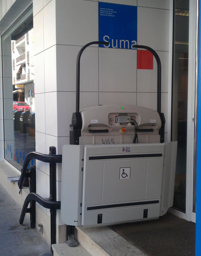 Plataforma salvaescaleras Vimec V65 instalada en las oficinas de Suma Agencia Tributaria en el municipio de Torrevieja (Alicante).