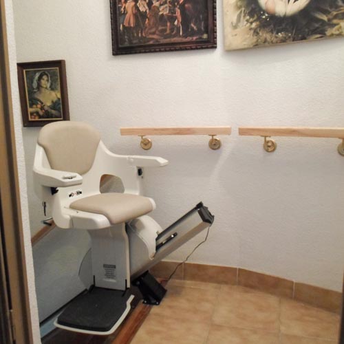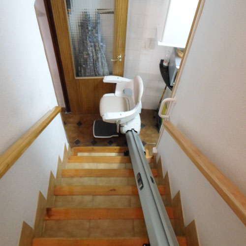 Silla salvaescaleras modelo Acorn ubicada en el interior de un chalet en Torrevieja un municipio costero que pertenece a la provincia de Alicante.