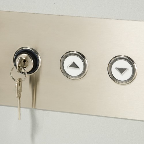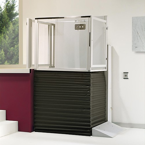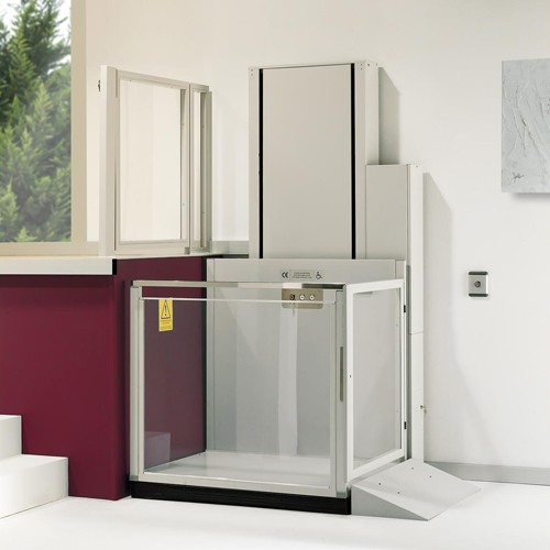 • Puerta sobre la cabina en acceso inferior y sobre el rellano en parada superior.
