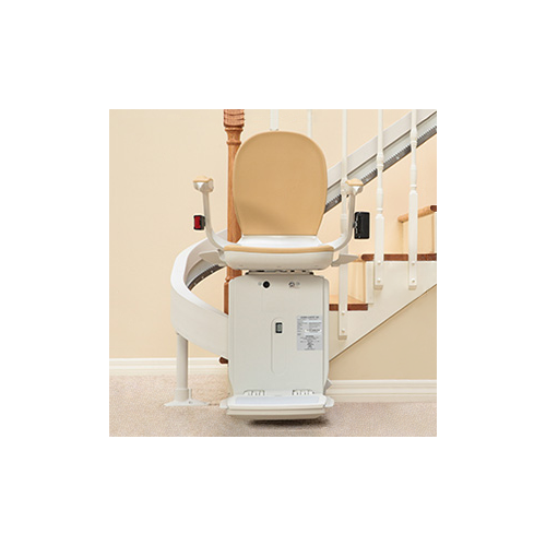 Este modelo de silla para escaleras curvas es el único del mundo que se fabrica en serie. Cada escalera tiene unas características distintas y todos los modelos de sillas Salvaescaleras para escaleras curvas tienen que ser fabricados a medida con la excepción de este modelo.